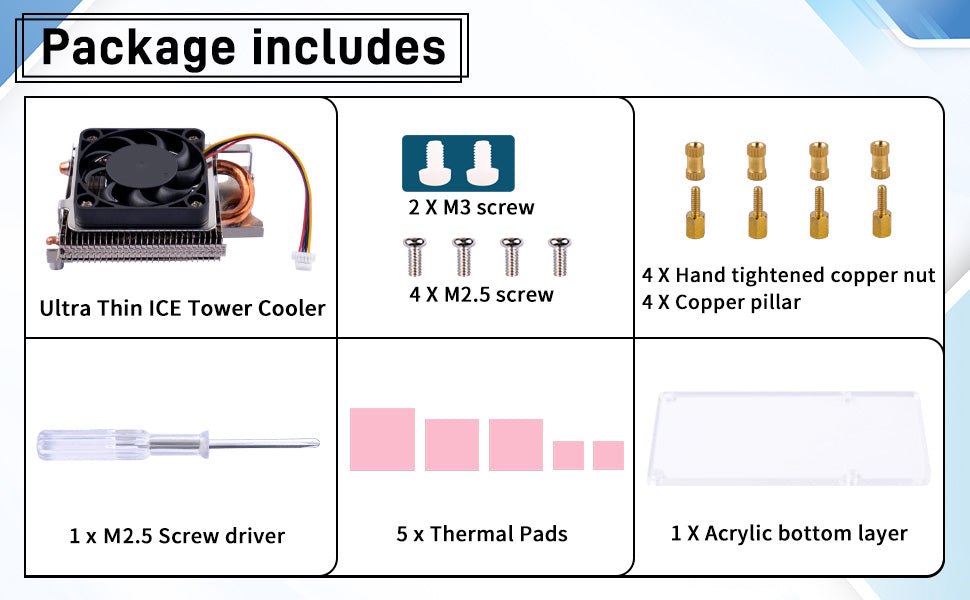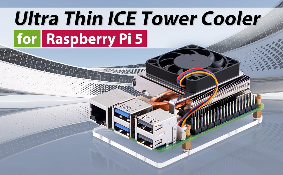 The Ultra Thin ICE Tower Cooler is a state-of-the-art cooling solution specifically engineered for the Raspberry Pi 5. This innovative cooler is designed with a horizontal tower structure that provides exceptional heat dissipation capabilities. It is equipped with an ultra-thin fin array that maximizes the surface area for heat transfer, ensuring optimal cooling performance.